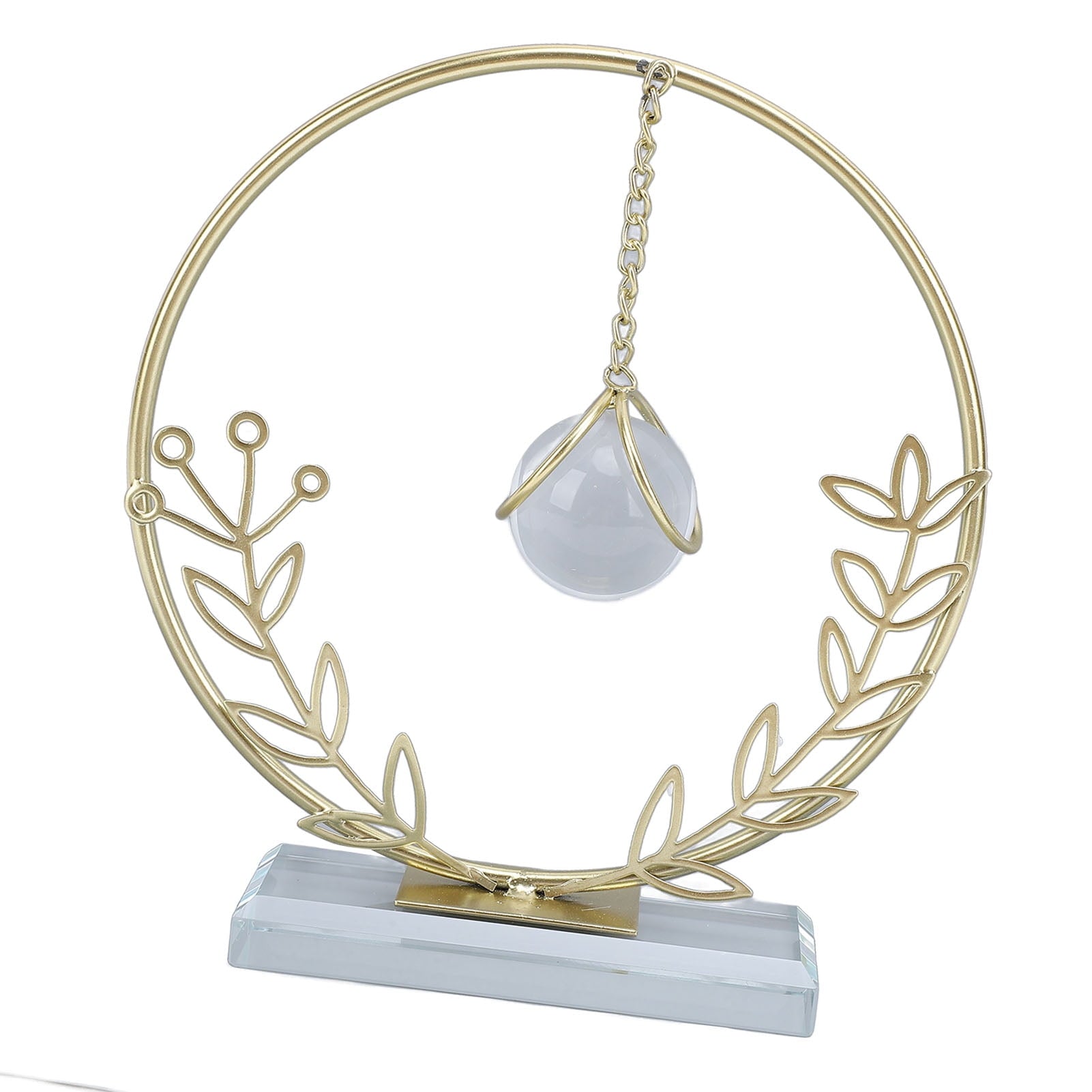 Gold Metal Round Shape Leaf Metal Ornament With Crystal Ball